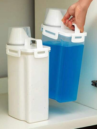 1 pieza Caja de almacenamiento de detergente en polvo, cubo de plástico para jabón de gran capacidad, recipiente enlatado para detergente, caja de almacenamiento dedicada, portátil con asa y tapa, sellado de 4 lados, tapa con vaso medidor, balde de embalaje multifuncional para el hogar, tina de lavandería, tanque de almacenamiento de agua para el baño - Multicolor - Añade 1