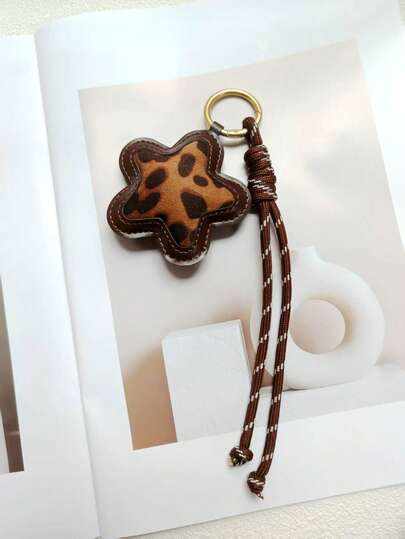 1 pieza Llavero con colgante de flor 3D de leopardo con acolchado de PU estilo Nicho, accesorio delicado de bolso con colgante floral de leopardo - Multicolor - Añade 5