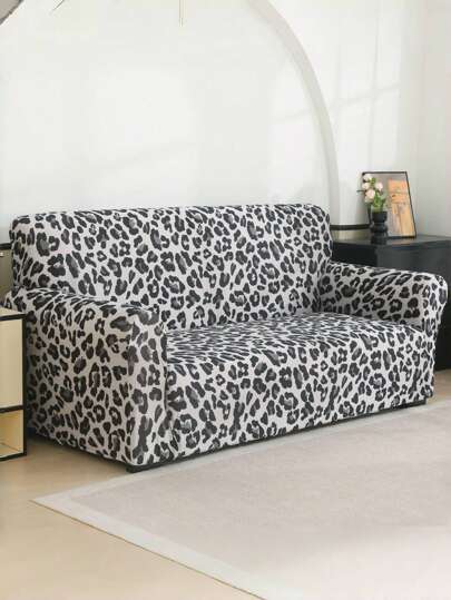 1 pieza Funda elástica para sofá con estampado de leopardo, versátil para todas las estaciones, funda protectora simple para sofá para decoración del hogar en la sala de estar - Blanco y Negro - Añade 1