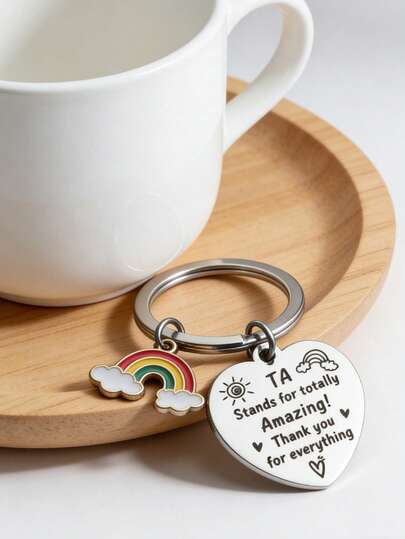 1 pieza Llavero con lema de letra, regalo para maestros, regalo de graduación, llavero con colgante de arcoíris, accesorio para bolso, regalo de vacaciones, esencial de viaje - Plateado - Añade 1