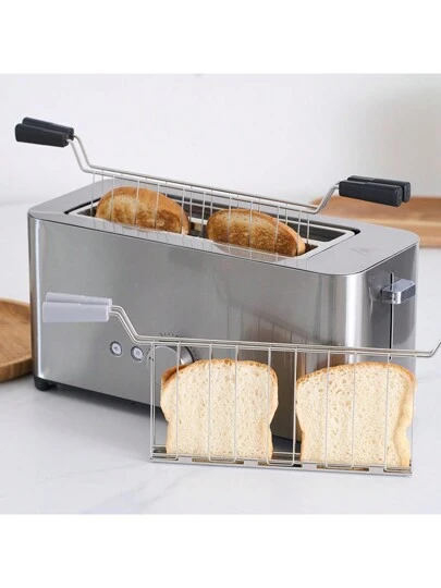 1 Pieza Tostadora De Ranura Larga, Soporte De Sándwich De Acero Inoxidable, Pinza Y Jaula De Sándwich Herramientas De Cocina De Horneado Para El Hogar, Regalo Para Mamá, Accesorios De Cocina - Negro - Añade 4