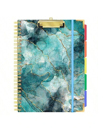 1 Libreta De Espiral Con Patrón De Mármol Con Bolsillo Pp Y Bloc De Notas, Libreta De Cartera Organizadora Multifuncional - mármol - Añade 7