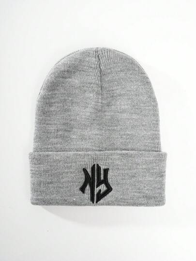 1 Pieza Gorro De Punto Para Hombre Con Bordado, Adecuado Para Uso Diario - Gris - Añade 1