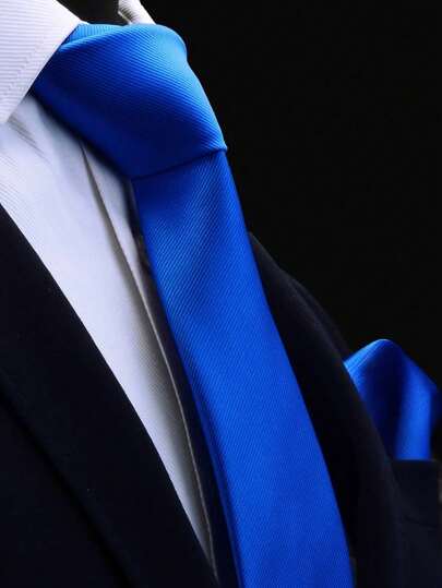 1 pieza Conjunto de corbata y pañuelo cuadrado de 8 cm de color azul real con textura para hombre, para boda y fiesta, para el novio - azul real - Añade 1