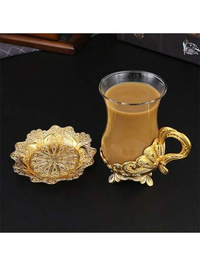 1 pieza Taza de café de diseño de metal y vidrio, vaso para beber agua diariamente, apto para uso en la oficina y el hogar, obsequio exquisito para vacaciones y vuelta al colegio - Serie de tazas de café de metal - Añade 6