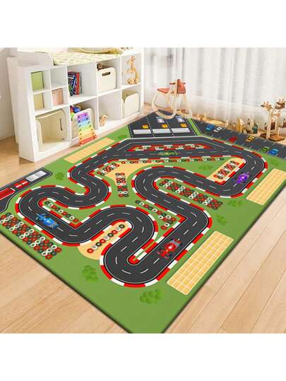 1 pieza Alfombra con diseño de pista de carreras popular en Oriente Medio, Alfombra de juego para autos en miniatura, apta para estudio, sala de juegos, sala de estar, dormitorio, entrada, regalo de Año Nuevo, decorativa, resistente a la suciedad, antideslizante y lavable - Multicolor - Añade 1