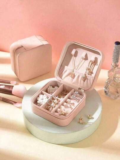 1 pieza Caja de joyería mini, estuche de joyería portátil para viajes, caja de exhibición de joyería de múltiples compartimientos, caja de almacenamiento de joyería de múltiples funciones para anillos, collares, aretes, lápices labiales - Diseño elegante adecuado para el hogar y el dormitorio - multicolor - Añade 1