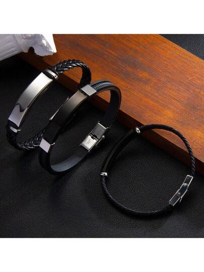 1 pieza Pulsera minimalista de acero inoxidable y trenzado para hombre - Pulsera de cuero - Añade 3
