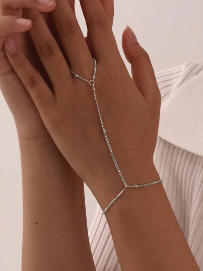 1 pieza Pulsera de nudillos de cadena de metal con cuentas de moda minimalista (cadena hecha a mano cortada al tamaño apropiado, número aleatorio de cuentas) - Añade 1