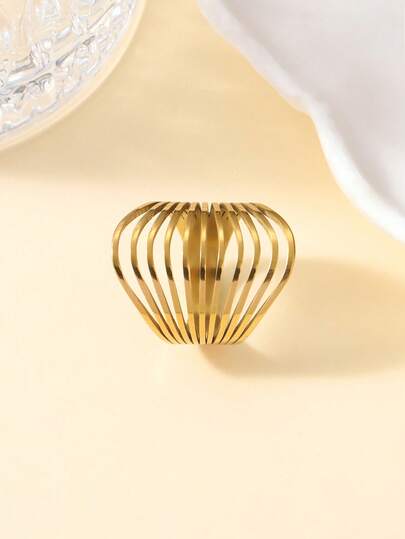 1 pieza Anillo de acero inoxidable de diseño lujoso minimalista con rayas múltiples, accesorio para fiesta y regalo - Dorado - Añade 1