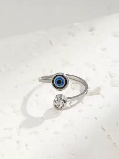 1 Anillo Abierto Minimalista Estilo Ojo Malvado Color Plata, Adecuado Como Regalo Para Chicas - Plateado - Añade 1