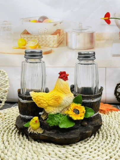 1 pieza Set de salero y pimentero de vidrio con gallina y pollitos, regalo para el Día de la Madre - Multicolor - Añade 2