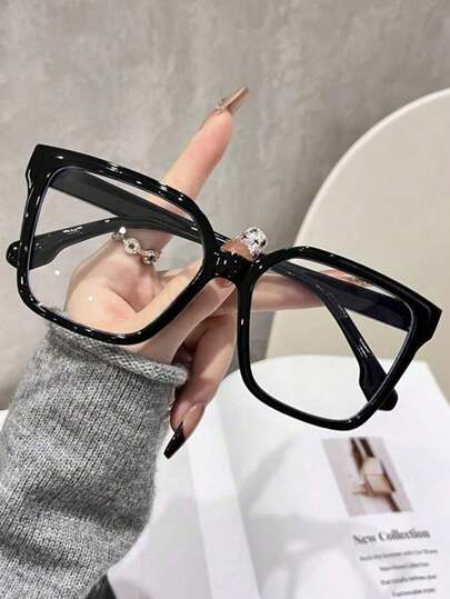 1 pieza Nuevas gafas de estilo europeo y coreano de alta gama con montura de ojo de gato grande, lentes transparentes minimalistas adecuadas para ir al trabajo, estudiar y la vida diaria - Espejo liso con marco grande - Añade 8