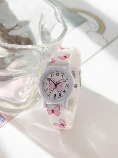 1 pieza Nuevo reloj de cuarzo casual y lindo con diseño de mariposa para niños, adecuado como regalo de cumpleaños/festividad - Multicolor - Añade 1