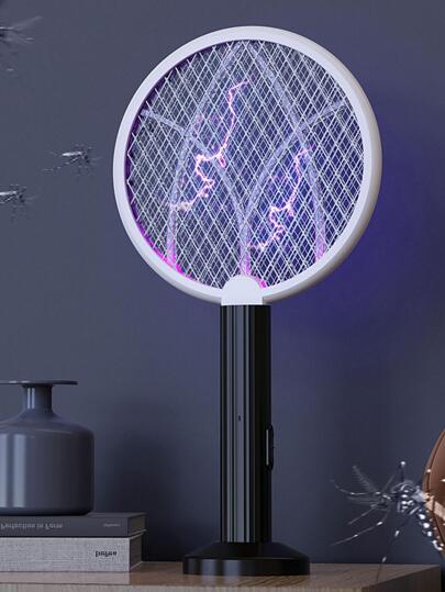 1 pieza Palmeta matamoscas nuevo doméstico eléctrico mosquito USB batería de litio recargable multifuncional poderoso - Blanco y Negro - Añade 1