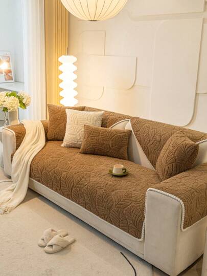 1 Pieza Funda De Cojín De Sofá De Felpa Antideslizante Con Color Sólido Y Patrón De Flores Conciso Y Técnica Jacquard 3d Para Sala De Estar, Dormitorio. Lavable A Máquina, Adecuado Para Todas Las Estaciones. - Café integral - Añade 5