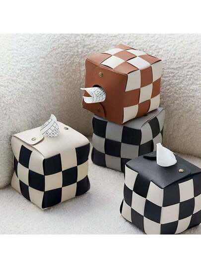 1 pieza Porta caja de pañuelos estilo nórdico con diseño de tablero de ajedrez en blanco y negro para el hogar, sala de estar, comedor - Multicolor - Añade 9