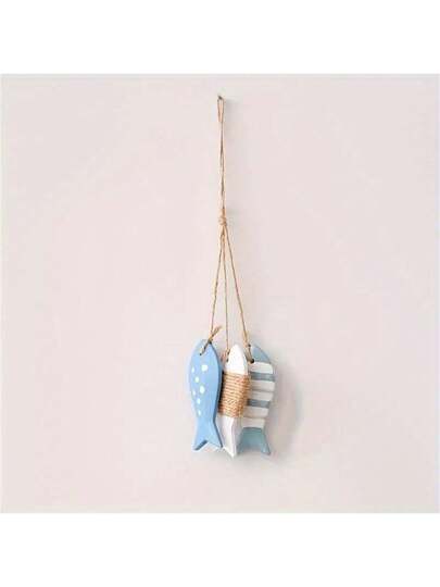 1 pieza Adorno colgante del océano de talla de madera maciza decoración para el hogar - Pez pequeño colgante decorativo de concha - Tres peces manchados rayados - Añade 2