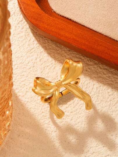 1 pieza Anillo femenino de diseño abierto, de cobre metálico con lazo, de estilo fashionable y minimalista - Anillo de lazo - Añade 1