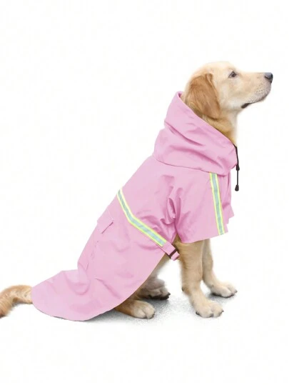 1 pieza Impermeable de mascota de PU con diseño reflectante, cuello y vientre ajustables, con orificio para correa para caminar al aire libre y uso nocturno, se ajusta a perros de todos los tamaños - Rosa - Añade 1