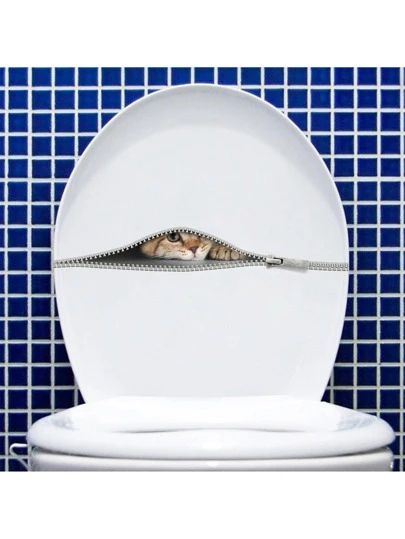 1 pieza PVC Tapa del inodoro dulce con patrón de gato Decoración para tapa de inodoro para casa - Multicolor - Añade 1