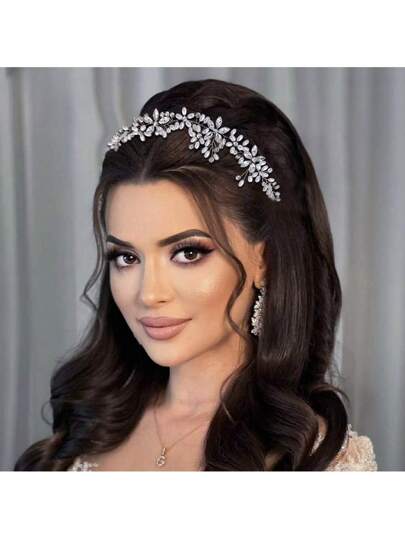 TRIXY 1 pieza Diadema de boda de perlas falsas Tiara de novia Tocado con rhinestones Accesorios elegantes para el Día de San Valentín - Plateado - Añade 1
