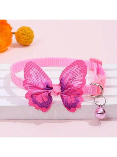 1 Pieza Collar De Mascota Rosa Con Mariposa, Collar De Cuello Universal Ajustable Para Gato Y Perro Con Campana Para Mascotas Pequeñas - Rosa - Añade 1