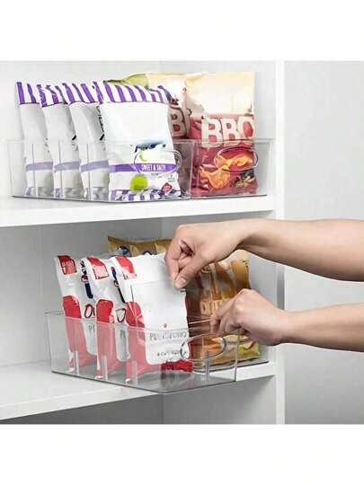 1 pieza Caja de almacenamiento de plástico con divisores móviles, organizador de almacenamiento para despensa, refrigerador y gabinetes de cocina, utensilios de cocina del hogar - transparente - Añade 2
