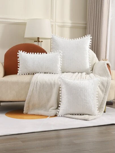1 pieza Funda de cojín sin relleno pompón - Blanco - Añade 4