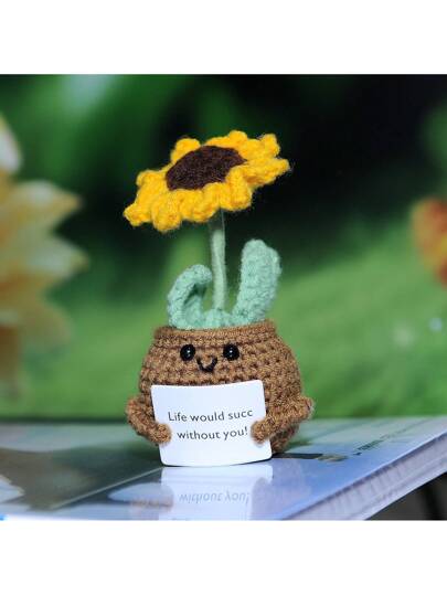 1 Planta De Girasol En Maceta Positiva, Linda Tarjeta Decorativa Hecha A Mano Con Energía Positiva, Hermoso Emoji Para Fiesta En Casa - Maceta de girasol - Añade 10