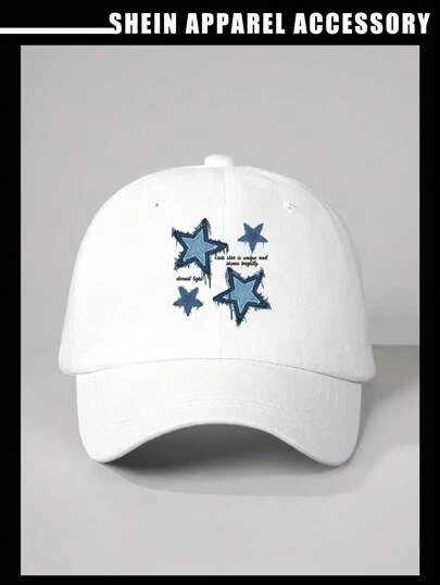 SHEIN X Lucía Bellido 1 pieza Gorra de béisbol unisex con estampado de estrella de cinco puntas, escuela - Blanco - Añade 1