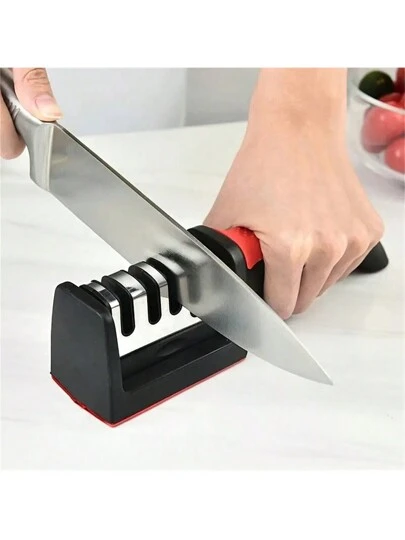 1 pieza Afilador de cuchillos de cocina profesional, piedra afiladora de tungsteno, rhinestone y cerámica - Accesorios y utensilios para el hogar, regalo de Navidad para cocinar - Negro - Añade 3