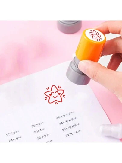 1 pieza Sello de estrella de cinco puntas de color aleatorio para comentarios de profesores, lindo sello de recompensa para tareas de estudiantes, útiles escolares - Multicolor - Añade 4