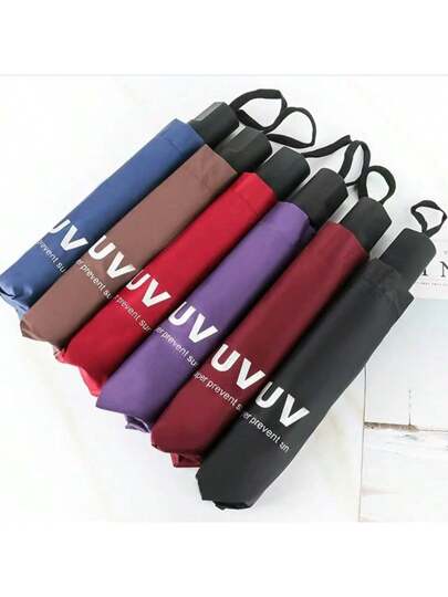 1 pieza Paraguas plegable tipo sombrilla de estilo coreano con revestimiento negro, protección solar y UV, eje resistente - Multicolor - Añade 5