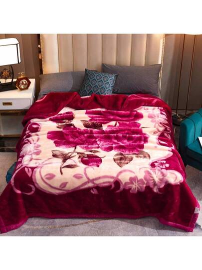 1 pieza Manta de doble capa con diseño de pasta de judía roja y rosa, manta vintage con estampado floral - Añade 6