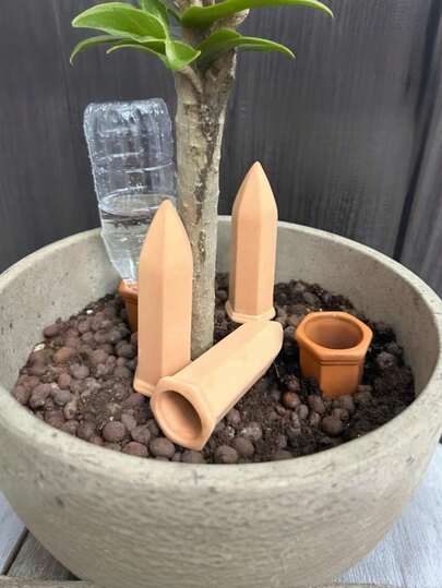 1 pieza Dispositivo de riego automático de tierra roja, maceta de riego por goteo clásica de cerámica, herramienta de riego para plantas en maceta del hogar - Rosa coral - Añade 3