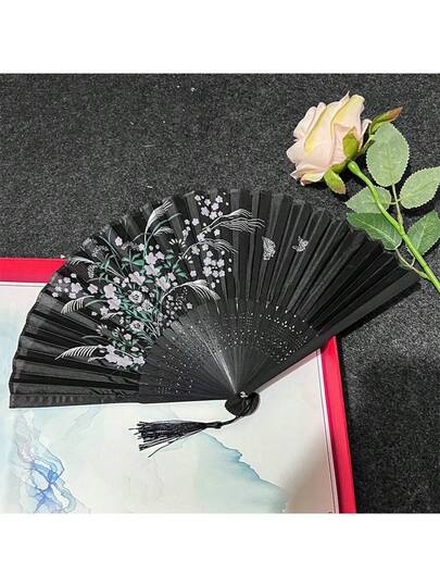 1 pieza Abanico plegable de estilo chino retro con borlas, portátil para Hanfu y baile - Lenguaje Sakura - Añade 1