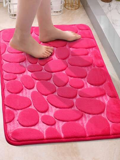 1 pieza Alfombra de baño con diseño de piedras de color rosa, alfombra suave de franela antideslizante y absorbente de agua para uso doméstico, decoración de baño, alfombra de baño, alfombra de piso, alfombra exterior, alfombra de puerta, verano - Rosa Fucsia - Añade 1