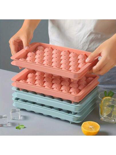 1 pieza Bandeja de cubitos de hielo de plástico - 33 compartimientos, forma de bola redonda, accesorio de herramienta de cocina, para hacer bolas de hielo perfectas, 7.8 pulgadas / 4.9 pulgadas - Multicolor - Añade 4
