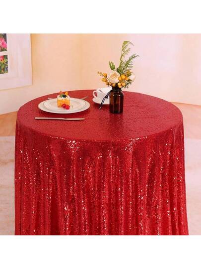 1 pieza Mantel de mesa redondo con lentejuelas doradas brillantes, adecuado para bodas, fiestas de cumpleaños, baby shower - Rojo - Añade 1
