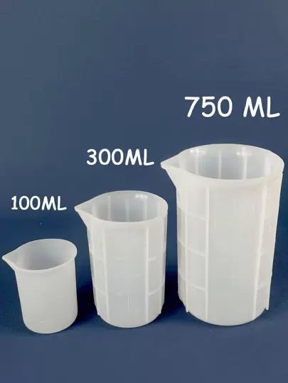 1 pieza Taza de medición de silicona, Tazas de mezcla de resina epoxi, Moldes de fundición de joyería, Vertido de pintura acrílica, Antiadherente y reutilizable, Escala precisa para manualidades de resina, Elaboración de joyería DIY - Blanco - Añade 3