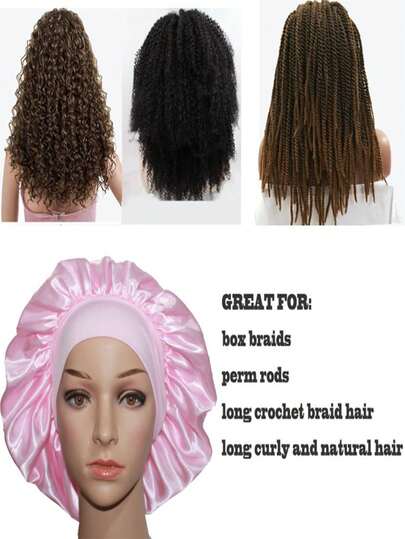 1 pieza Conjunto de gorro de dormir de seda - Gorro de satén para el cabello, adecuado para cabello rizado/ondulado, con banda elástica suave (negro y dorado), gorro de dormir suave para proteger el cabello y controlar el frizz - Multicolor - Añade 4