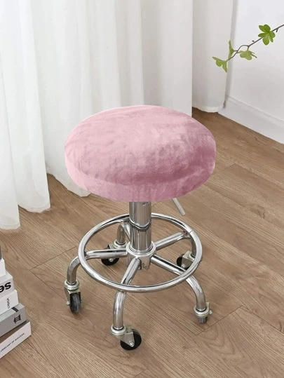 1 pieza Funda para taburete/silla redonda con cubierta de peluche de zorro plateado, elástica, resistente al polvo y a los arañazos para el hogar, el dormitorio, la sala de estar - Rosa - Añade 5