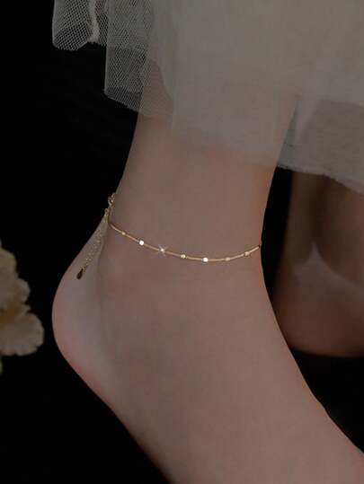 1 pieza Tobillera minimalista y simple con microdestellos dorados, apta para uso diario por mujeres - Amarillo Oro - Añade 1