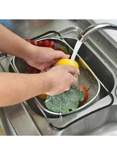 1 pieza, Colador para el fregadero, Cesta de lavado de verduras para el fregadero, Rejilla de escurridor de frutas, Cesta escurridor de acero inoxidable, Cesta coladora, Rejilla ajustable para el fregadero, Colador multifuncional, Productos de cocina, Utensilios de cocina, Accesorios de cocina - Multicolor - Añade 3