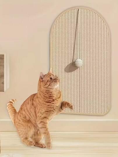 1 pieza Tabla rascadora de sisal para gatos - Duradera, almohadilla rascadora de sofá con juguete y alfombrilla para gatos, almohadilla antiarañazos de sisal para protección de sofá, resistente a las garras de gato, tabla rascadora multifuncional con adhesivo de pared y juguete - Rascador para gatos de sisal grande de forma ovalada de 58 x 36 cm - Añade 7