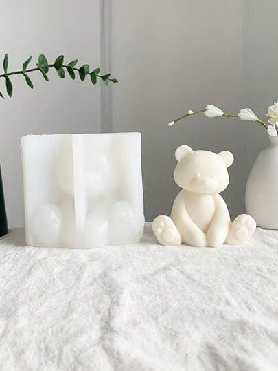1 pieza Molde de vela de silicona en forma de oso sentado para manualidades DIY - Blanco - Añade 3