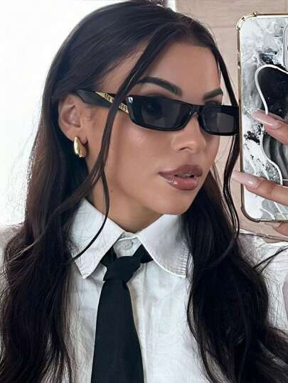 1 pieza Gafas de moda con montura pequeña rectangular de ojos de gato, estilo retro Y2K, color caramelo personalizado - Negro - Añade 1