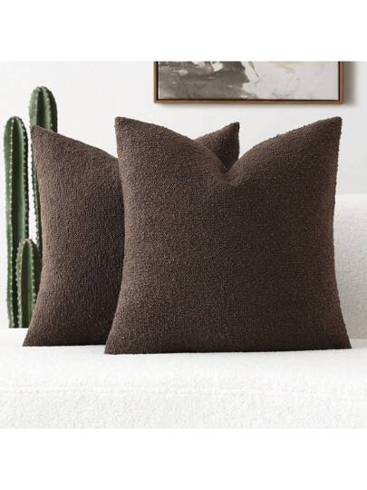 1 pieza Funda de cojín de unicolor sin relleno, funda de almohada de boucle texturizada para sala de estar y sofá - Marrón oscuro - Añade 2