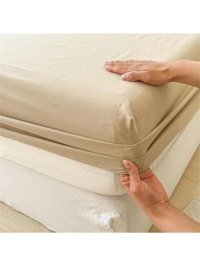 1 pieza Sábana bajera ajustable unicolor ajustado moderno de tela para dormitorio - Albaricoque - Añade 1